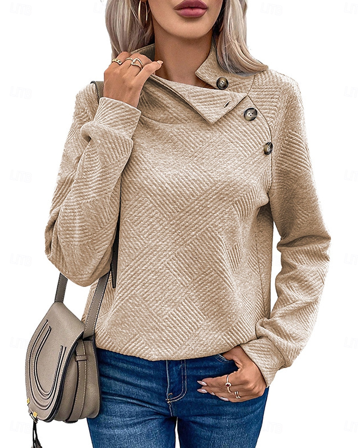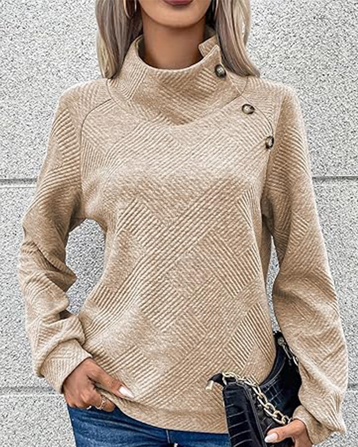 🎄Christmas Clearance🔥Women's High Neck Special Button Designer Sweatshirt